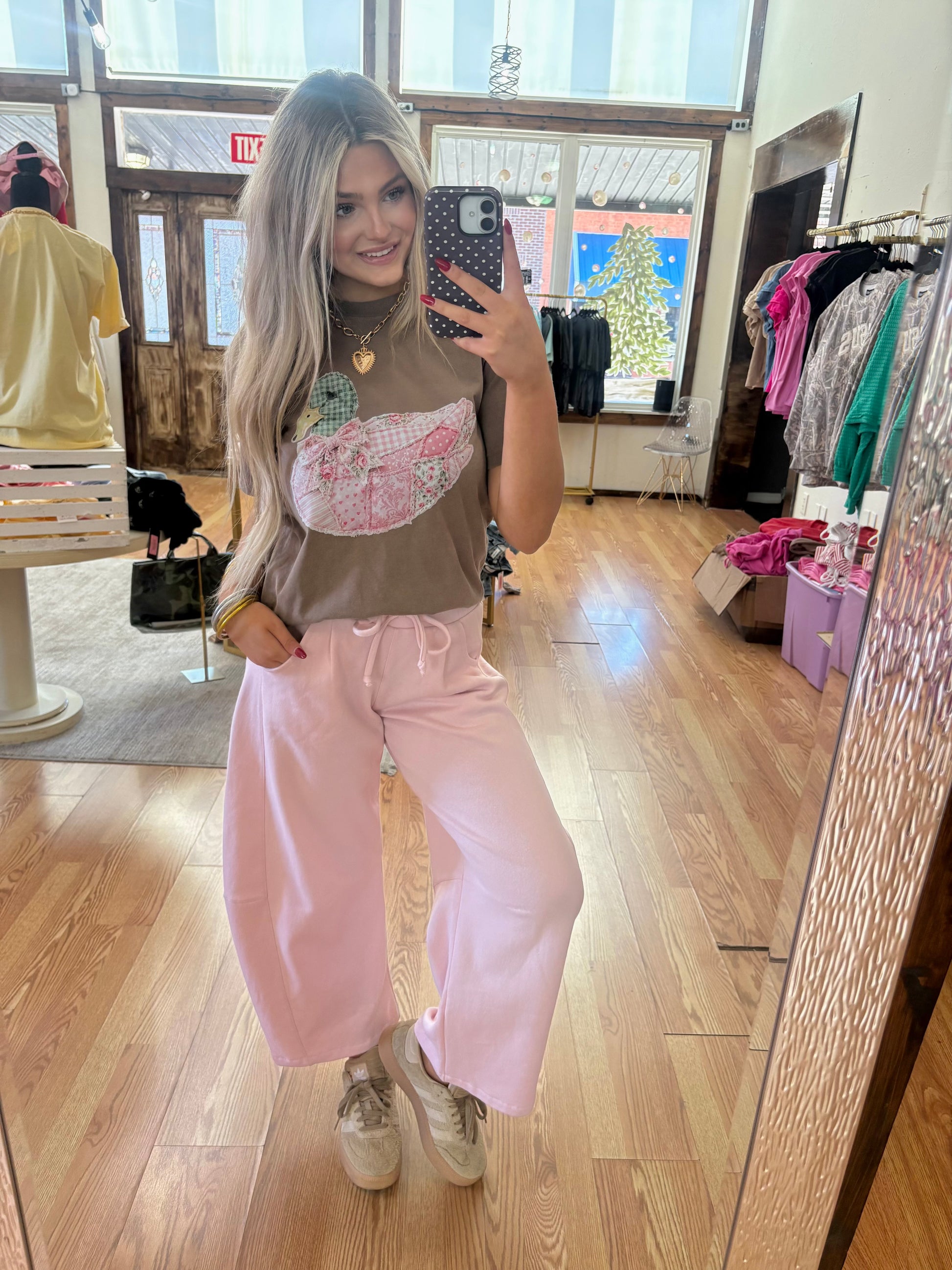 Pink Duck on Brown Tee
