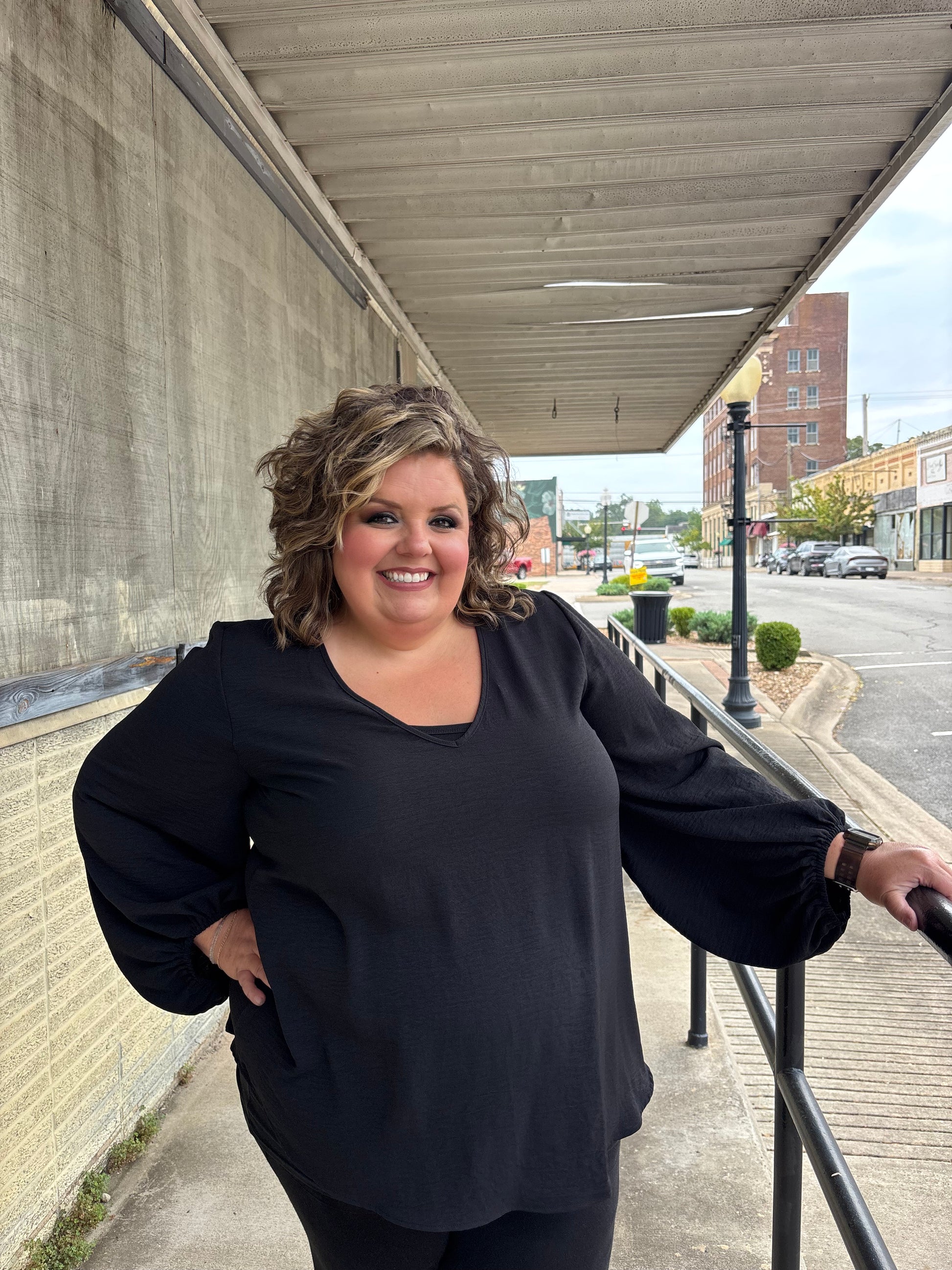 Plus V-neck long sleeve blouse